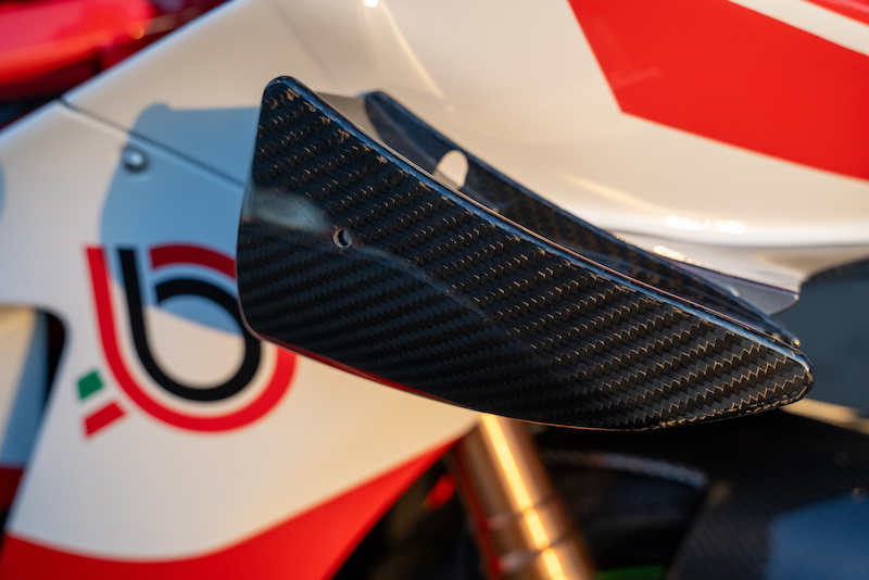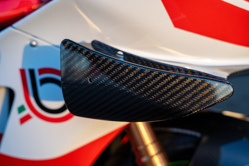 左右のウイングレットは走行状態やブレーキングに応じダウンフォースを調整する「可変」仕様。